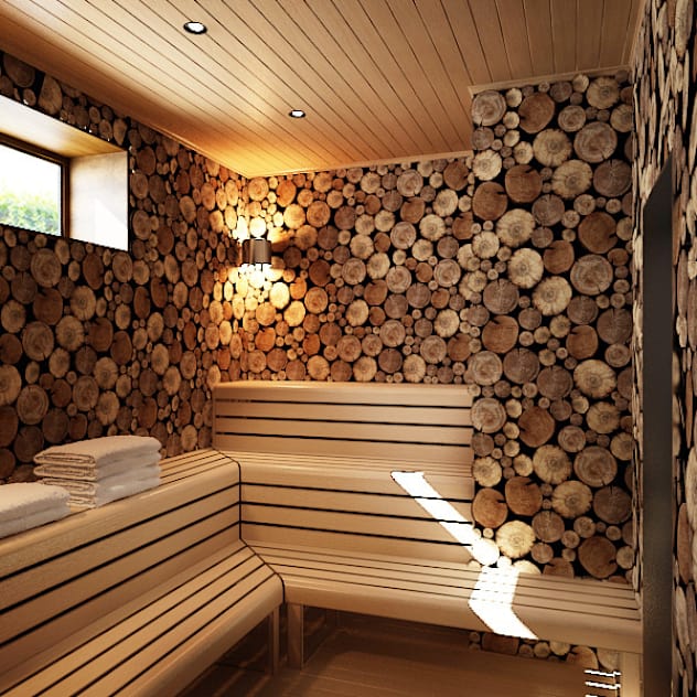 - La décoration des murs du hammam avec des coupes du bois donne à l'originalité intérieure.
