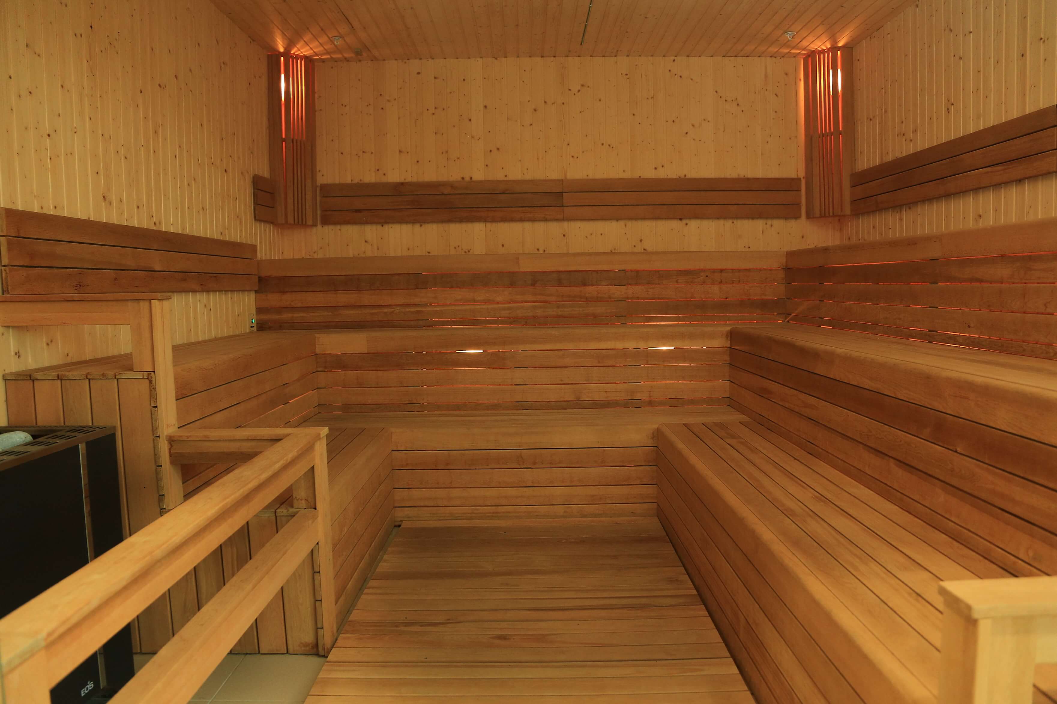 Il ne reste qu'une petite zone, la décoration en bois naturel d'essences spéciales et la température très élevée de la pièce, ce qui déclenche des processus de guérison bénéfiques dans le corps humain.