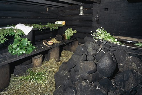 La suie a désinfecté les surfaces et les murs noirs fumés sont devenus complètement stériles. Ici, il y avait une baignoire ou une auge avec de l'eau, où le baigneur était lavé de la suie, qui dans ses propriétés remplaçait le savon.L'eau donnait une vapeur humide qui pénétrait dans les pores et les nettoyait. Les plus endurcis plongeant dans un trou de glace ou une petite rivière, un bain public fut donc placé à la périphérie du village, de préférence près de l’étang.