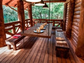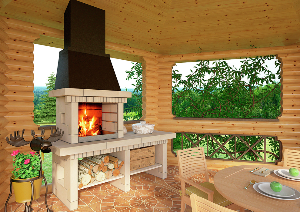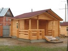 Beaucoup de gens préfèrent attacher une terrasse ou une véranda à la structure principale du bain. Avec cet espace supplémentaire, vous avez la possibilité de vous détendre à l'air frais, même par mauvais temps, et également d'installer un barbecue ou un gril.