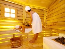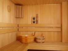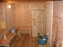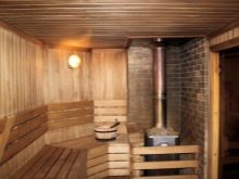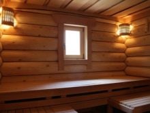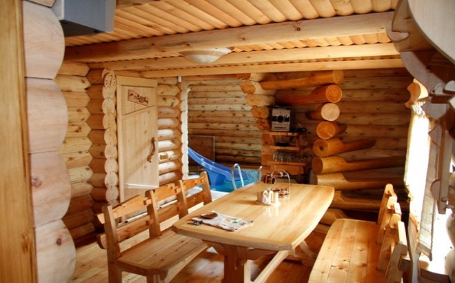 Bien sûr, la pièce la plus importante de la salle de bain en rondins est bien sûr le hammam. C'est en cela que votre corps se réchauffe et guérit. Un hammam implique la création de l'atmosphère la plus intime, des équipements d'éclairage tamisé, des radiateurs et un certain nombre d'étagères situées à différents niveaux.