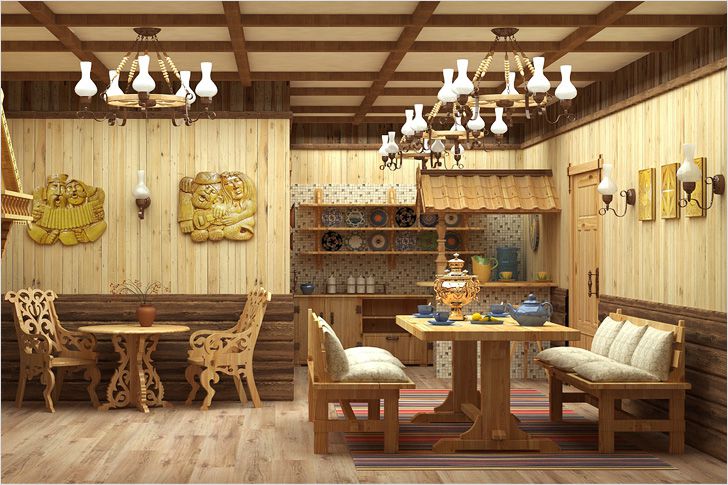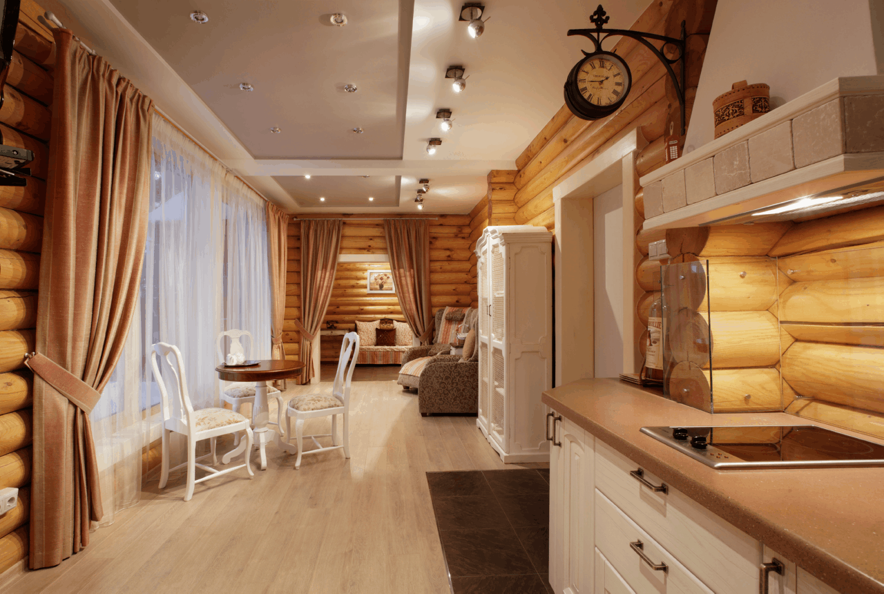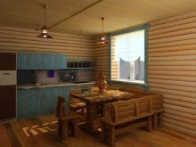 Il y a des bâtiments, équipés de différentes cabanes en rondins, ce qui vous permet de créer une configuration compliquée de la pièce. Un tel projet nécessitera des coûts financiers importants, mais une compensation augmentera le confort et la facilité d'utilisation.