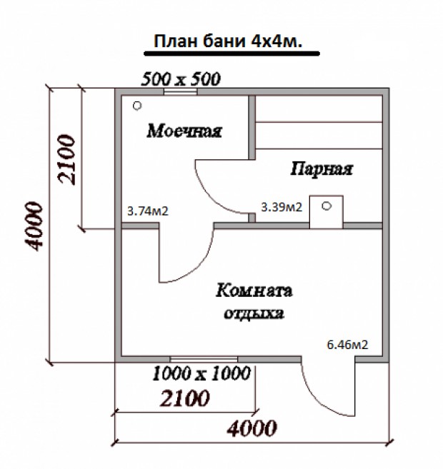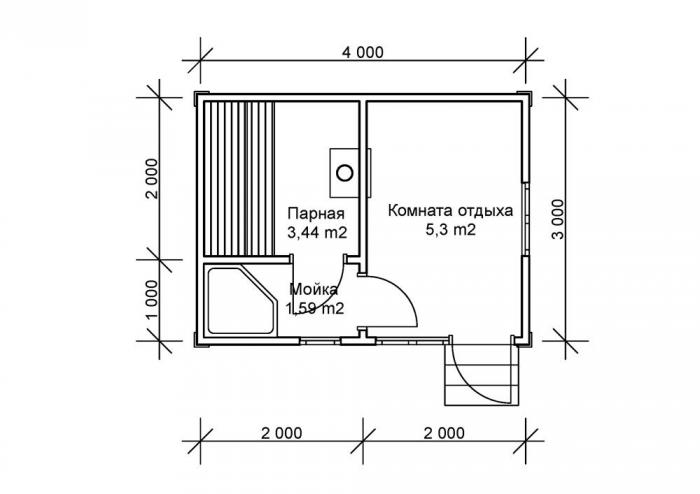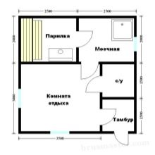 La première chose que vous devez décider est la zone pour la construction du bain. Le terrain que vous pouvez affecter à la construction déterminera, à bien des égards, le futur projet du bain. Avec une superficie de 20-22 mètres carrés, il est recommandé de donner la préférence à un projet de budget de 3 mètres par 4 mètres, 4 mètres par 4 mètres, 3 mètres par 6 mètres. Ces tailles de baignoires sont standard, donc choisir la bonne option ne sera pas un problème.