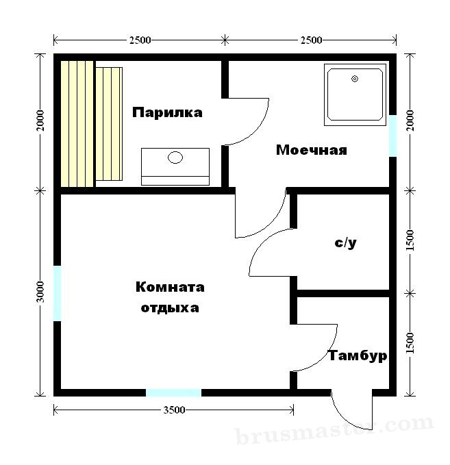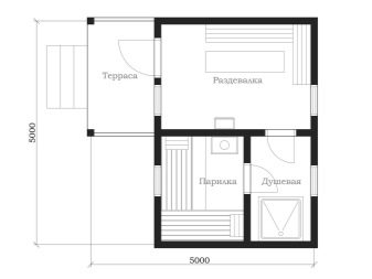 Ce projet est standard et souvent choisi pour la construction. C'est une option peu coûteuse, ayant tous les espaces fonctionnels nécessaires pour un passe-temps agréable et utile dans le bain.