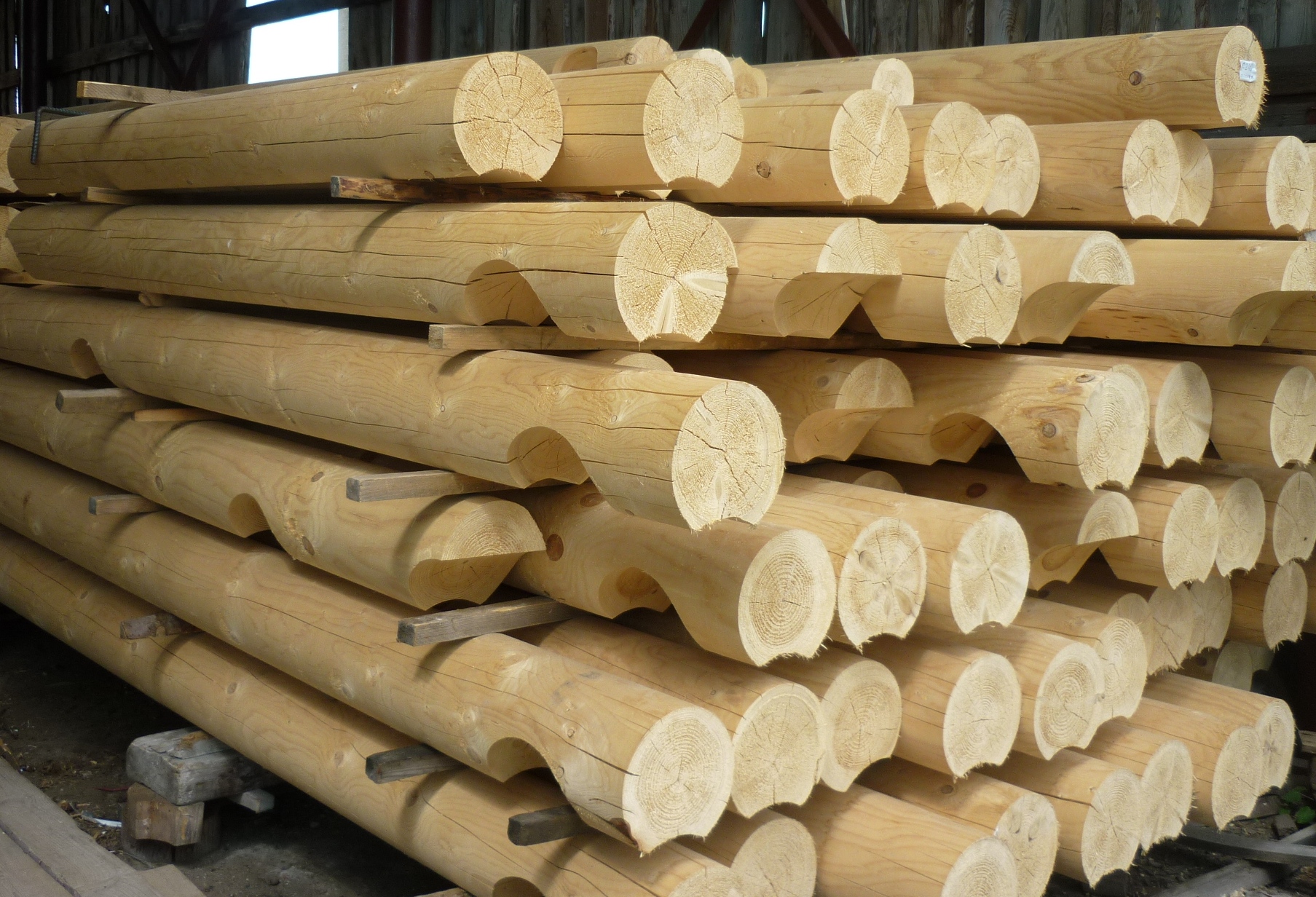 Souvent, les structures sont érigées à partir d’une bûche arrondie, cylindrique, ronde et calibrée.