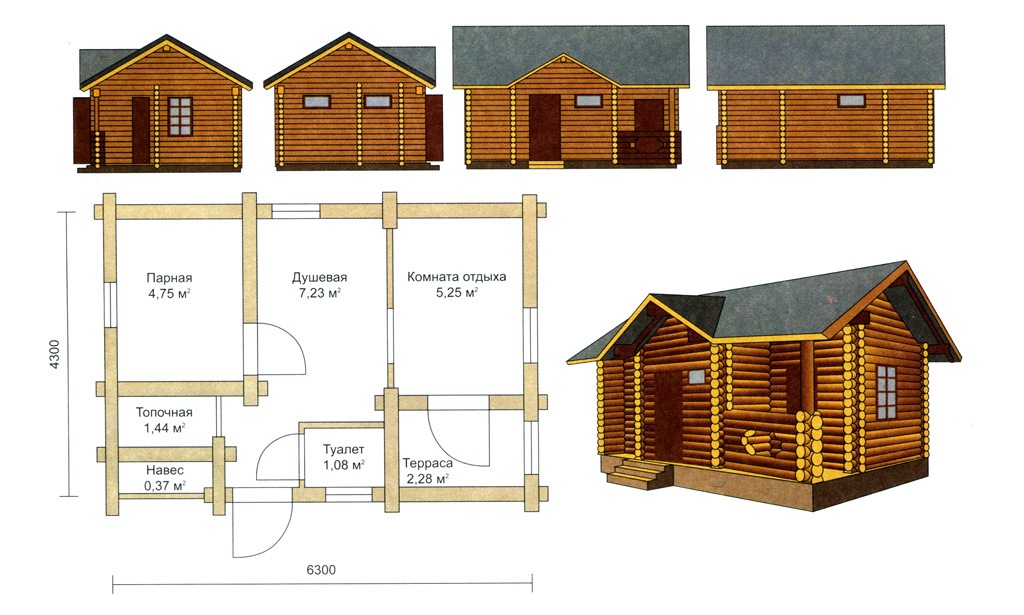 Dans la plupart des cas, les propriétaires de maisons de campagne et de gîtes préfèrent un authentique bania russe. Pour une telle construction, vous aurez besoin de construire une maison en rondins, dont les dimensions sont de 6 par 6 mètres. Il comprend un dressing et un hammam.