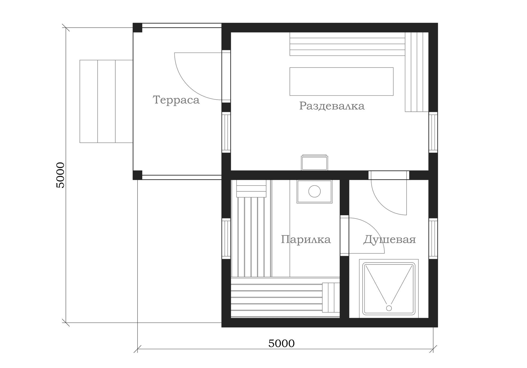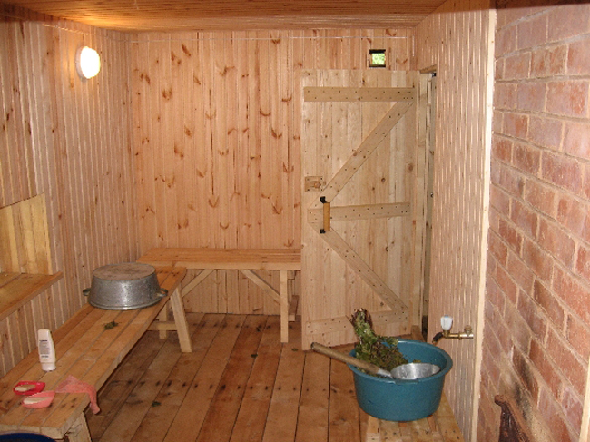 Pour la salle d'attente devrait être la soi-disant salle de lavage. Il est conçu pour laver le corps, suggère la présence d'une cabine de douche ou d'un bain. Lors de la planification de procédures d’eau en extérieur, comme dans un étang ou une piscine, Il est recommandé de prévoir à l’avance une sortie séparée, afin de ne pas contourner toute la salle de bain..