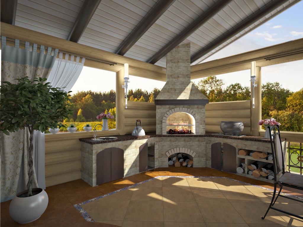 En gros, la terrasse est l’une des parties les plus importantes de l’espace de baignade, car elle protège l’intérieur du bain des courants d’air froid. La véranda est souvent construite autour du périmètre du bain.. De plus, si vous le souhaitez, vous pouvez l’équiper pour recevoir des amis.