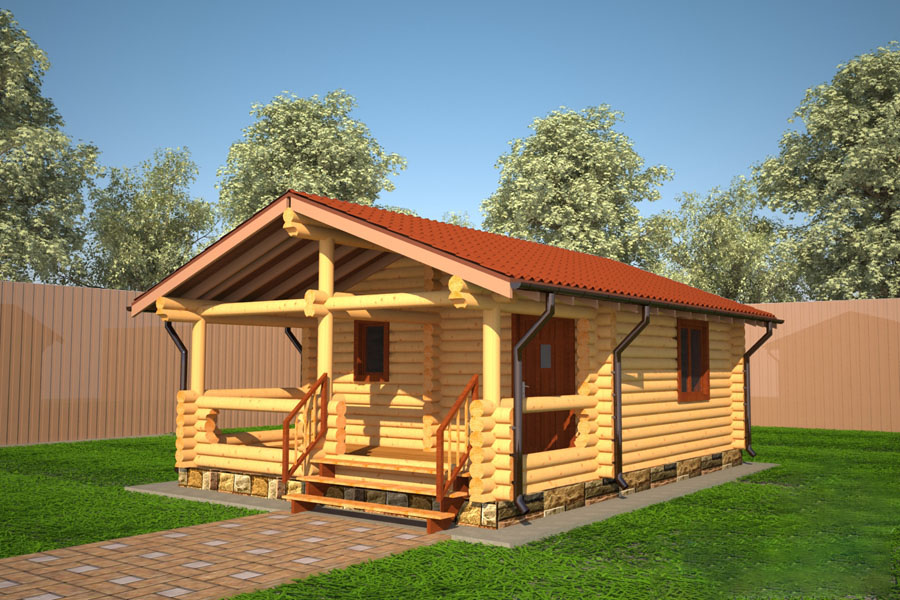 Un autre projet fréquemment utilisé pour la construction d'un bain est une maison en rondins d'un étage avec une véranda. C'est la meilleure option pour ceux qui organisent souvent un barbecue ou qui aiment la cuisine d'été. Une véranda vous permettra de vous détendre par une chaude journée en vous cachant à l'ombre.
