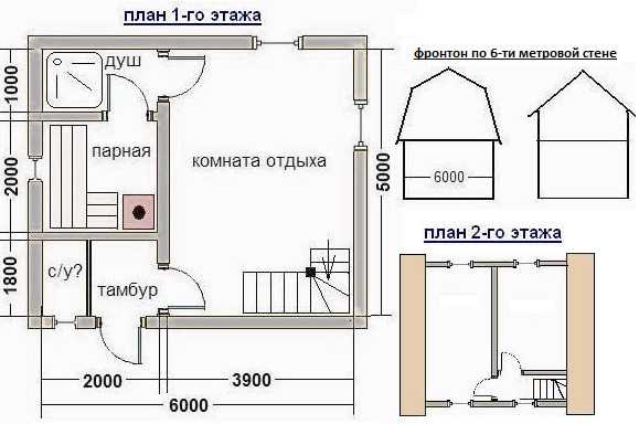 La chose habituelle est la construction d'un bain à deux étages. L'espace du deuxième étage est souvent équipé d'une zone de loisirs. Avec une superficie limitée allouée à la construction, le deuxième étage vous permettra de résoudre le problème d’un petit espace.. Vous pouvez également utiliser les étages supérieurs non seulement comme lieu de détente, mais aussi comme chambre d’hôte pour les invités qui apparaissent soudainement.
