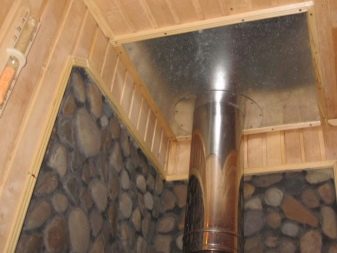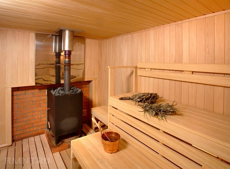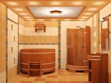 Vient ensuite la décoration murale, et le plafond est le dernier. Dans le bain, principalement dans le hammam, le plafond est exposé à la vapeur chaude et à une humidité élevée, ce qui indique la nécessité d’une protection supplémentaire. À cette fin, les recouvrements sont recouverts d'une membrane de bâtiment ou d'une feuille d'aluminium. Tous les joints sont collés avec du ruban d'aluminium.Le plafond au-dessus du poêle est en outre protégé par une tôle d'acier. À l’étage supérieur, il faut utiliser des matériaux de la plus haute qualité.