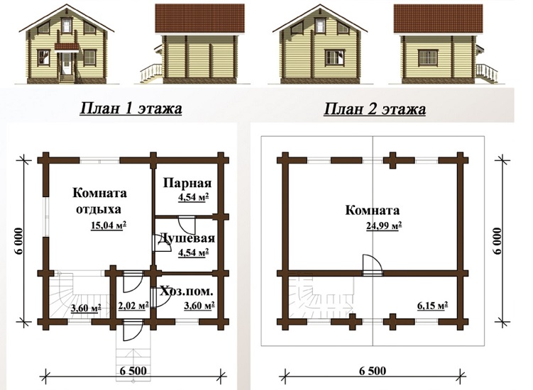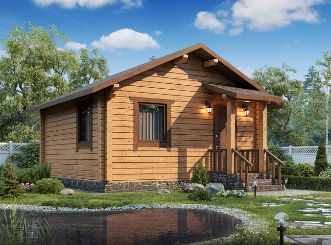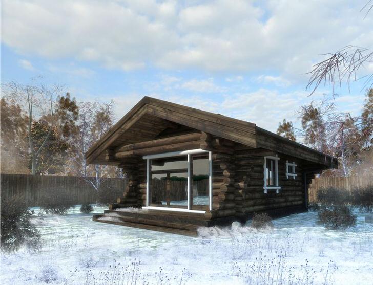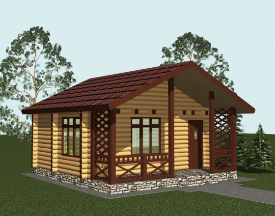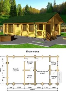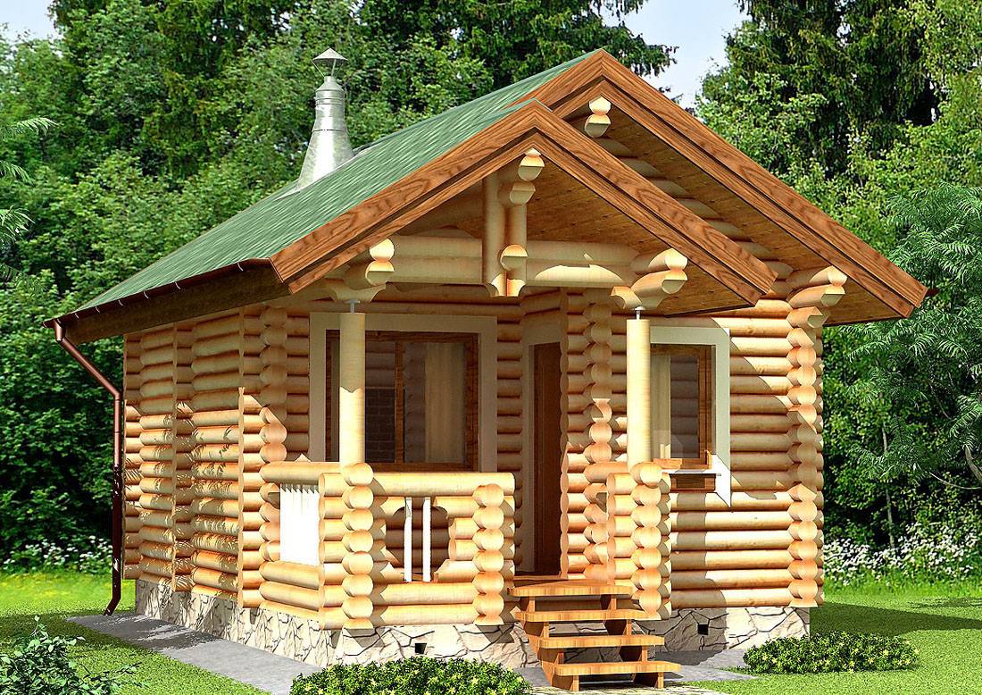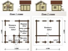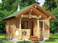 - Le projet populaire de 5 x 4 mètres convient à un petit terrain de 6 acres. Une telle salle de bains sera rapidement inondée avec une quantité minimale de carburant et jusqu'à cinq personnes auront le temps de s'y alimenter. Ce bâtiment est en rondins.