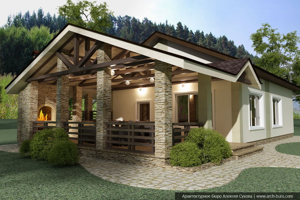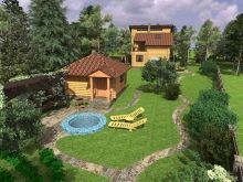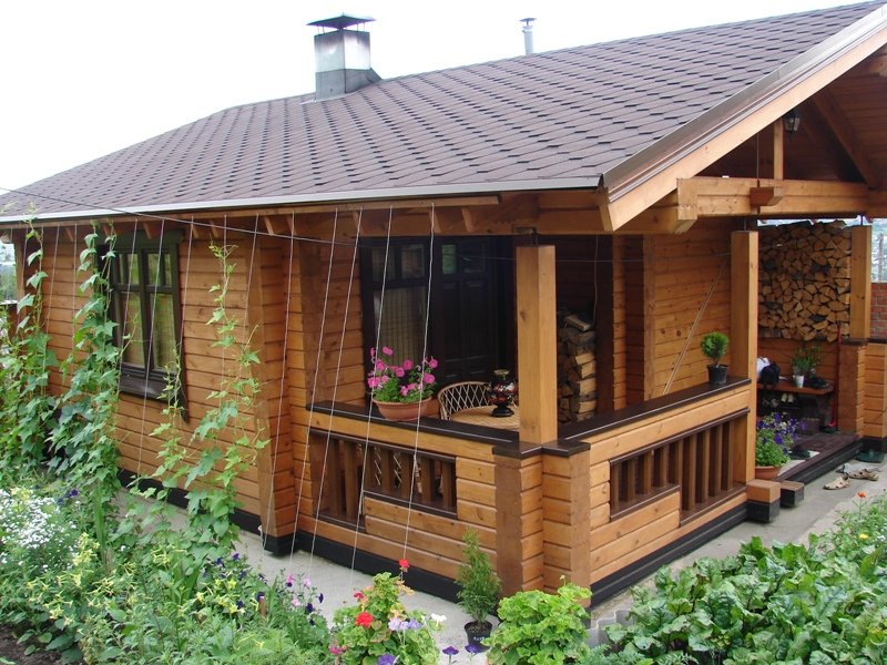 Ne pas oublier la conception des plantes de bain porche, des sculptures et autres éléments décoratifs, ainsi que le paysage autour. Le banc à côté du bâtiment, des parterres de fleurs soignés et un espace barbecue devraient constituer un ensemble unique avec un bain.