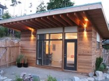 La conception du bain scandinave dans le style d'un chalet ressemble à un bain russe traditionnel, mais a ses propres «chips». La structure a une base élevée, finie avec de la pierre naturelle ou artificielle, qui protège contre les inondations et le gel. Le bâtiment est de plain-pied ou avec un grenier. La décoration intérieure est faite de bois et de verre et les murs eux-mêmes sont construits en bois massif et en rondins. Pignon de toit à faible surplomb, souvent asymétrique. Le bain est chauffé par un poêle et les meubles sont achetés dans le style scandinave: bois naturel, structures massives.