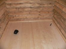 La décoration intérieure commence toujours par le sol. Il est coulé avec une chape en béton, qui est ensuite posé des bûches, un revêtement rugueux, puis un revêtement de sol propre. Dans le même temps, il est nécessaire de concevoir immédiatement un système permettant d’évacuer l’eau de la pièce. Comme le revêtement de sol est le plus souvent utilisé tuile ou planche hachée, bien qu'il existe aussi des solutions originales originales.