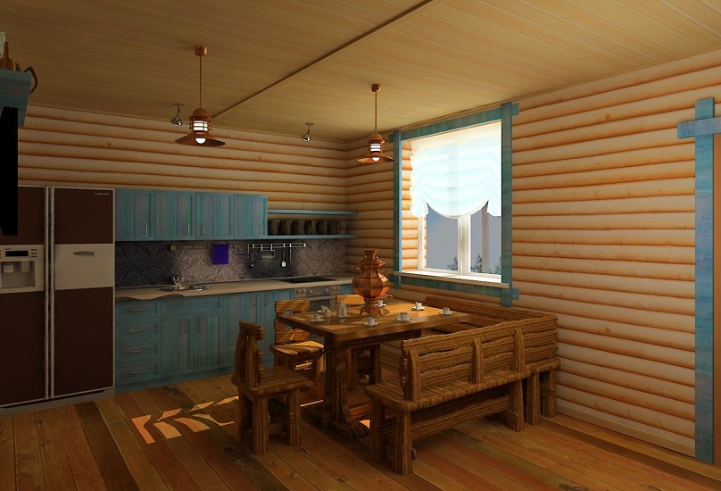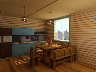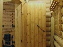 Maison usagée et bloc - une sorte de doublure, ressemblant à des bûches. Seuls les bois durs, tels que le tilleul, conviennent au revêtement intérieur. L'imitation du bois est également une solution courante.