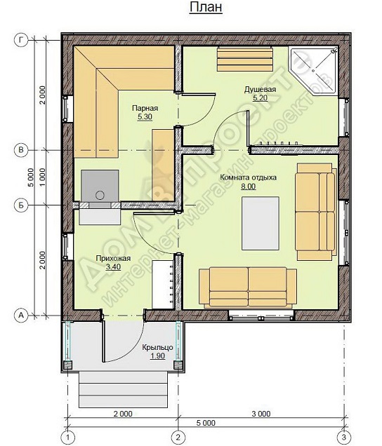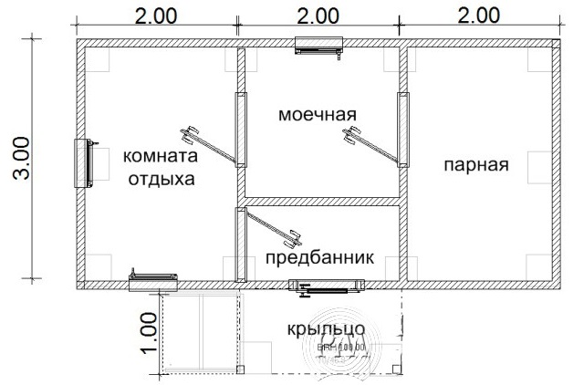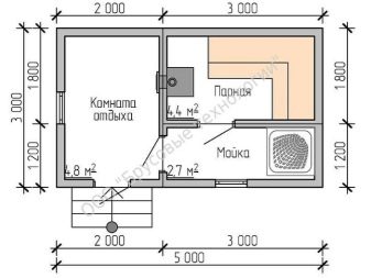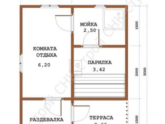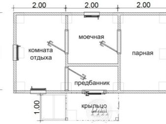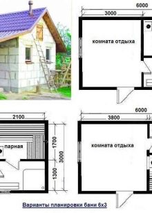 - Le projet 6x3 mètres comporte généralement 4 pièces: une salle d'attente, un hammam, une salle de lavage et une salle de repos. Bath appartient au centre et possède souvent une véranda.