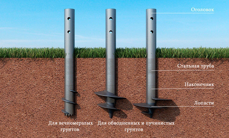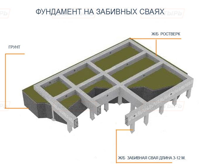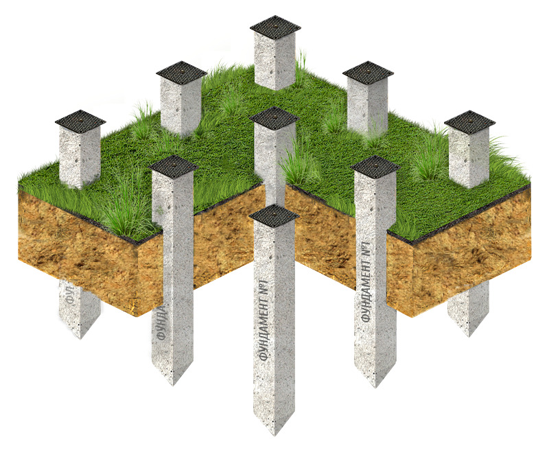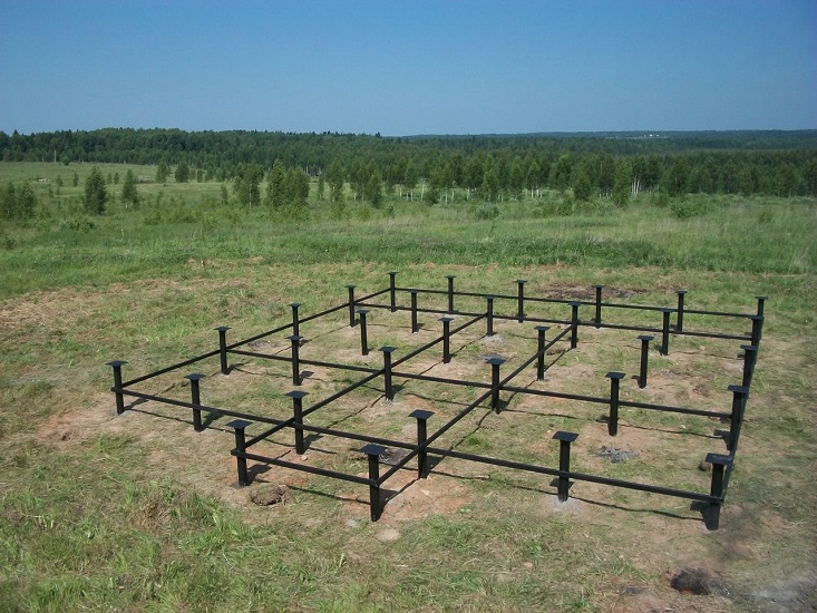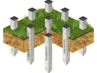 - Piloter des piles - de telles structures constituées de pieux en béton armé sont très rarement utilisées, mais elles sont utiles pour accélérer la construction.Habituellement, 6 pieux vissés d'une profondeur de 2,5 mètres suffisent.