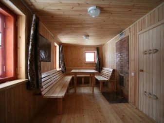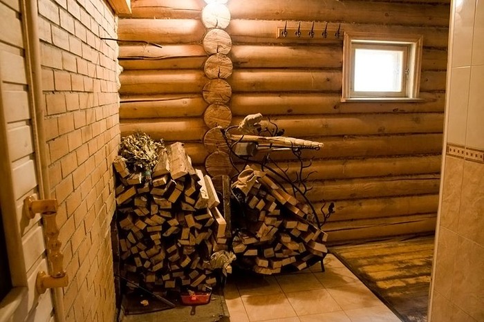 Très souvent, le hammam et la salle de lavage sont séparés par une petite cloison. Si la salle de repos est assez grande, il est possible d'y aménager la cuisine, de sorte qu'il soit toujours possible de faire cuire quelque chose de simple et de faire bouillir le thé. Il est judicieux de compléter le bain par une terrasse d’été avec un abri pouvant accueillir un poêle à barbecue. Le deuxième étage d'une salle de bain à deux étages devrait être aménagé en une pièce à vivre avec des pièces à part entière.