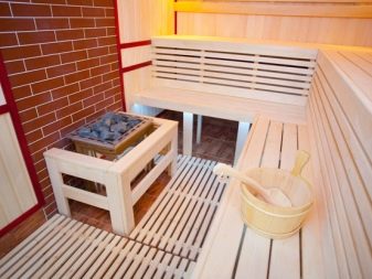 Les bains de briques peuvent durer jusqu’à 150 ans et être très attrayants, démontrant ainsi l’imagination des designers.La brique présente les taux de résistance au feu les plus élevés et le matériau lui-même est considéré comme sûr pour l'homme. Mais ils chauffent beaucoup plus longtemps et ont une faible conductivité de la vapeur.