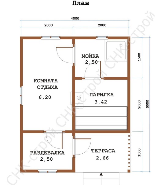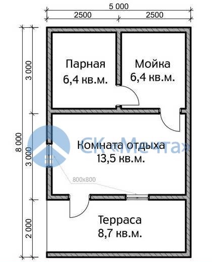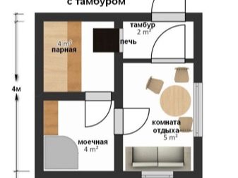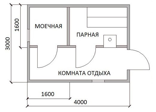 - Le plus simple des bains publics de 4x4 m est un bâtiment composé d’une seule pièce, qui est à la fois une salle d’attente et un hammam. Le projet standard comprend une salle de repos ou une salle d'attente, un hammam et, si possible, une aire de lavage. L'option la plus réussie contient également une terrasse attenante.