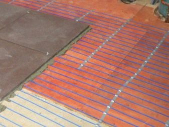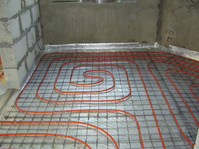 Les méthodes de chauffage modernes incluent le système "plancher chaud". Ils sont électriques et à l’eau, et la deuxième option est plus économique et demande plus de main-d’œuvre. Tout d'abord, le matériau d'imperméabilisation est posé, puis la couche de solution et la couche d'isolation thermique.Un câble ou des tuyaux pour la circulation du liquide de refroidissement chaud est monté en haut, et tout est à nouveau recouvert d'un coupleur.