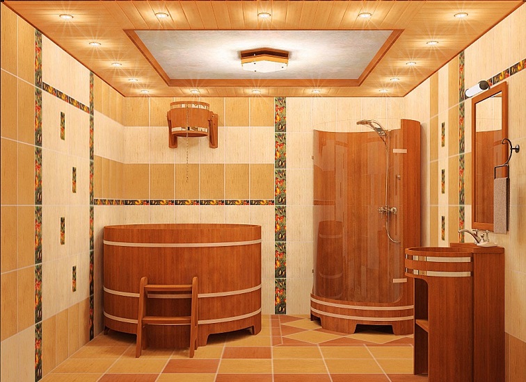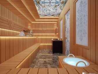 Les murs et le sol à l'intérieur de la baignoire peuvent également être finis avec différents matériaux. Ils doivent être résistants à l'humidité et à l'abondance de vapeur d'eau, respectueux de l'environnement, capables de servir pendant de nombreuses années et, bien sûr, esthétiques.