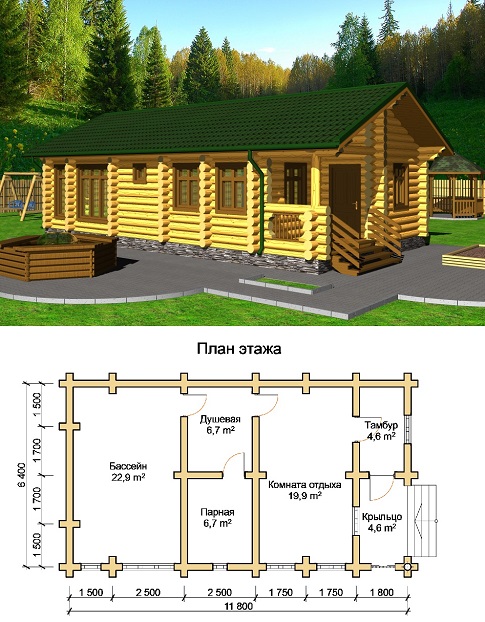 En général, la meilleure option serait de placer le bain dans une zone de loisirs séparée, à l’écart du bâtiment principal. À proximité, vous pouvez installer une piscine ou un lac artificiel dans l’eau après un bain de vapeur chaud.