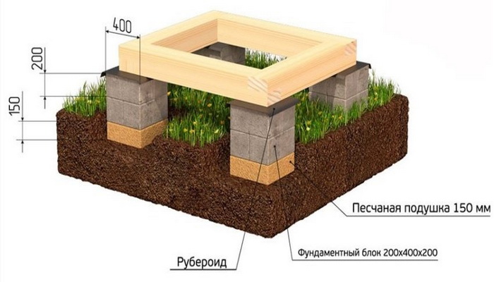 Ces fondations sont choisies par les propriétaires de petits saunas en rondins ou en bois d'oeuvre.