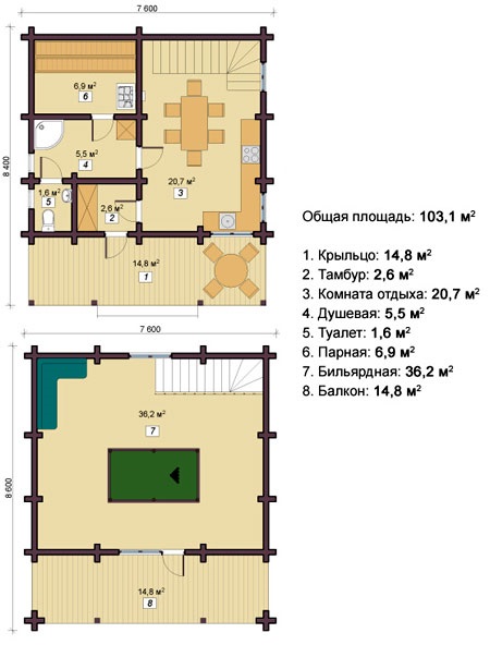 Si vous souhaitez combiner une salle de bains avec une maison d’hôtes, il est recommandé de créer un plan d’un bâtiment de deux étages avec une cuisine. Au premier étage, il y a généralement un hammam, une salle de douche, une salle de repos, des toilettes et au deuxième étage, des chambres à coucher, une petite cuisine et une autre salle de bains. Une telle structure permettra d'économiser de l'espace sur le site et créera de l'espace supplémentaire.
