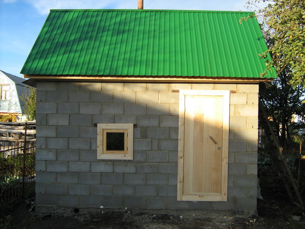 Peu coûteux est également considéré la construction d'un bain de blocs de béton légers.qui sont maintenant largement représentés sur le marché. Vous pouvez en prendre un bain en 2-3 jours, sans demander d’aide à qui que ce soit. Cependant, il sera nécessaire de chauffer la façade avec un revêtement, ce qui protégera également des influences extérieures. Les blocs de béton peuvent durer longtemps et transférer en toute sécurité plus d’un changement de décoration intérieure. La mauvaise chose est que de tels bâtiments ne retiennent pas particulièrement la chaleur, contrairement à ceux en bois.