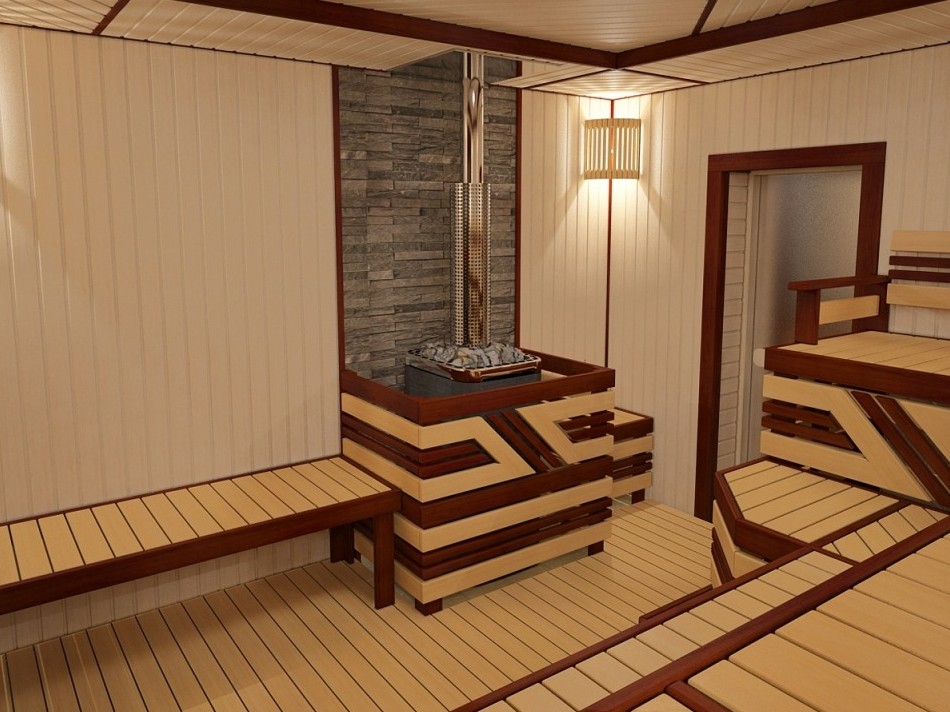 Lors de la planification d'un hammam, n'oubliez pas que la superficie minimale par personne doit être de 1 mètre carré.et le four en métal est installé à une distance d'au moins 1 mètre du mur et est entouré d'une cloison. Une excellente solution serait de placer le poêle de manière à chauffer à la fois le hammam et la salle de repos. Dans le même temps, le chauffage doit être dans le hammam et la chambre de combustion dans la deuxième pièce. Lorsque vous décidez des étagères dans le hammam, vous devez considérer le moyen de baignade préféré: être assis ou allongé. Les fenêtres du hammam ne sont pas nécessaires si le boîtier de ventilation est disponible. Dans le cas contraire, il y a une fenêtre à double vitrage orientée à l'ouest.
