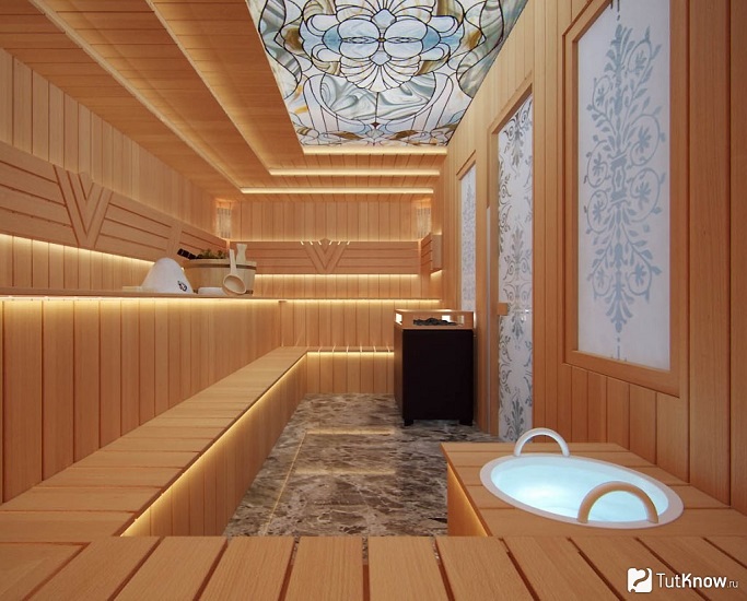 Le plus courant est l’option d’un tel bain où, sous un même toit, se trouvent un hammam, un bain ou une douche, ainsi qu’une salle de repos.