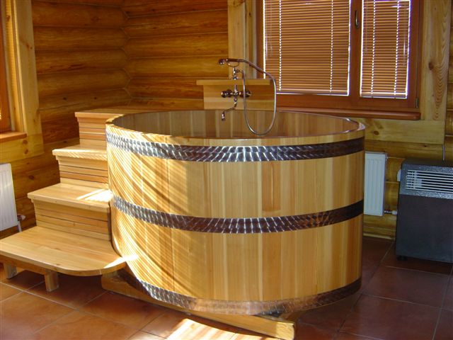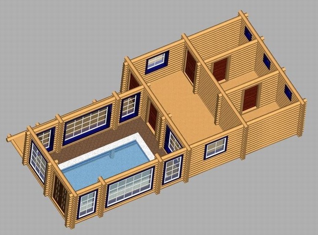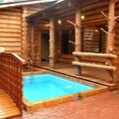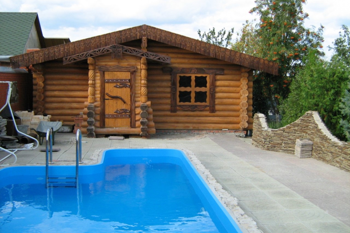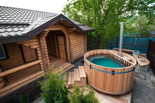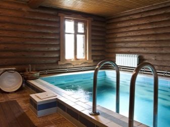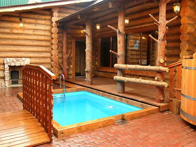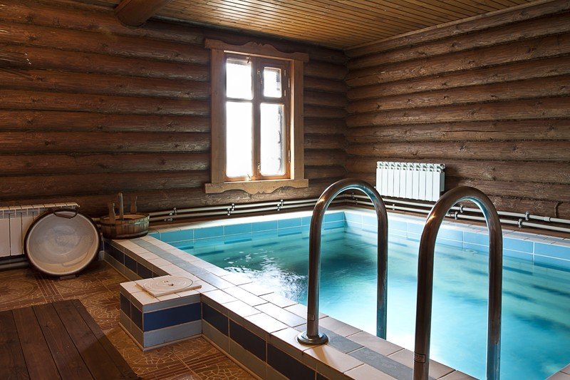 Selon les experts, il est plus correct d’équiper la piscine dans le bain d’une maison en rondins. Lorsqu'il est chauffé, le bois est capable de produire du goudron et de l'éther, dont l'inhalation a un effet positif sur la santé humaine.Les bois de conifères sont les mieux adaptés à la construction d’un établissement de bains, car ils ont des propriétés curatives.