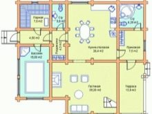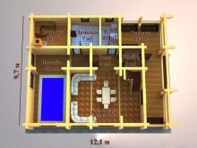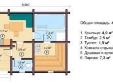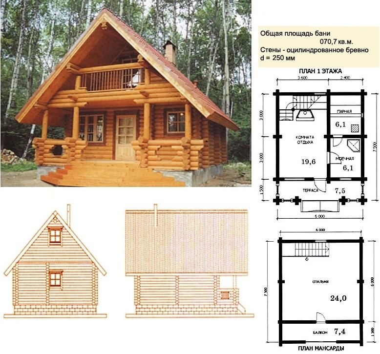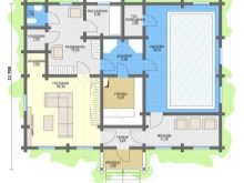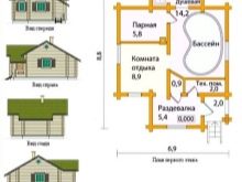 Ceci est un projet intéressant home-bath. Selon la taille du grenier, celui-ci peut être aménagé en salle de sport, vestiaire ou salle de bain. Vous pouvez le diviser en deux parties, en les insérant dans une police de caractères et dans l’autre - un hammam et un vestiaire. Au dernier étage, vous pouvez équiper la piscine située entre les deux chambres. Un tel bâtiment peut servir de maison d’hôtes.