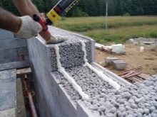 - Construction du bain des parpaings Il est considéré comme l'un des plus rapides, puisque sa taille est de 200x200x400 mm. Ce matériau a une grande résistance et résistance à la chaleur. Cependant, le creux des parpaings affecte la conductivité thermique de la structure et nécessite donc une isolation supplémentaire à l'extérieur.