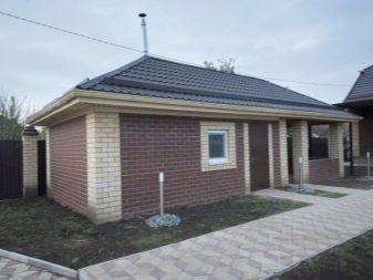 - Bains de briques capable de servir plus de 50 ans. La brique a une forme universelle, n'a pas peur du feu et ne nécessite pas de décoration extérieure. Mais ce matériau coûte plus cher que le bois ou les blocs de mousse et présente un coefficient de capacité calorifique élevé, ce qui entraîne une consommation de carburant importante pour le chauffage de la pièce.