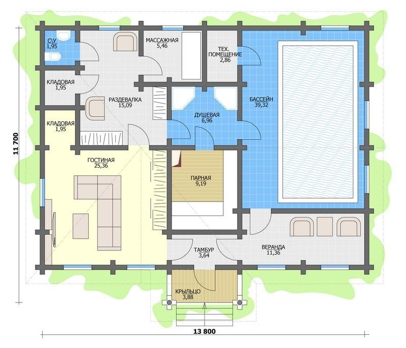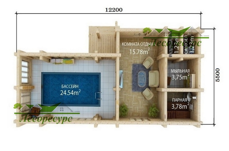 Le projet d'un complexe de bains avec piscine est généralement mis en œuvre dans des structures d'un étage.Une petite zone ne pourra pas accueillir toutes les installations de bain importantes avec une police, vous devrez donc construire un bâtiment de deux étages. Grâce à la technologie moderne, les utilisateurs ont la possibilité de compléter le bain avec les éléments nécessaires.