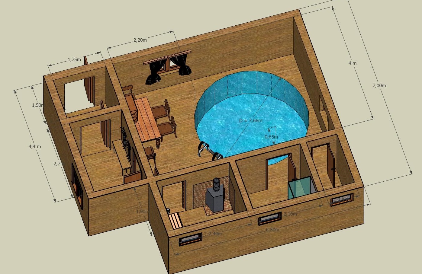 La construction du sauna peut avoir différents projets qui prendront en compte l'emplacement de la piscine. Cela peut être à l'intérieur d'un hammam, à l'air libre, sous un belvédère ou dans la pièce voisine.