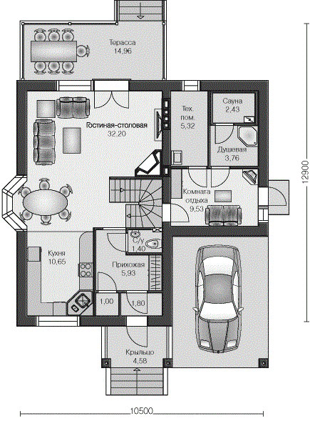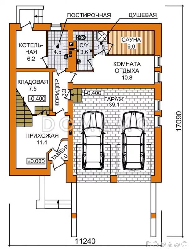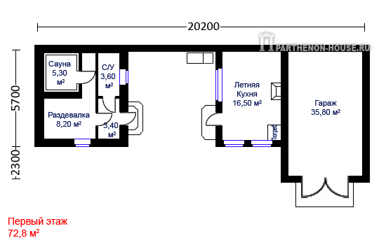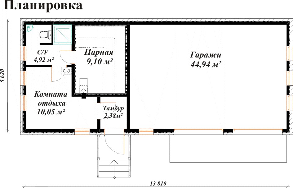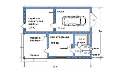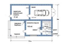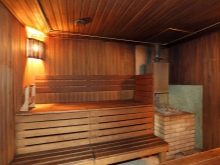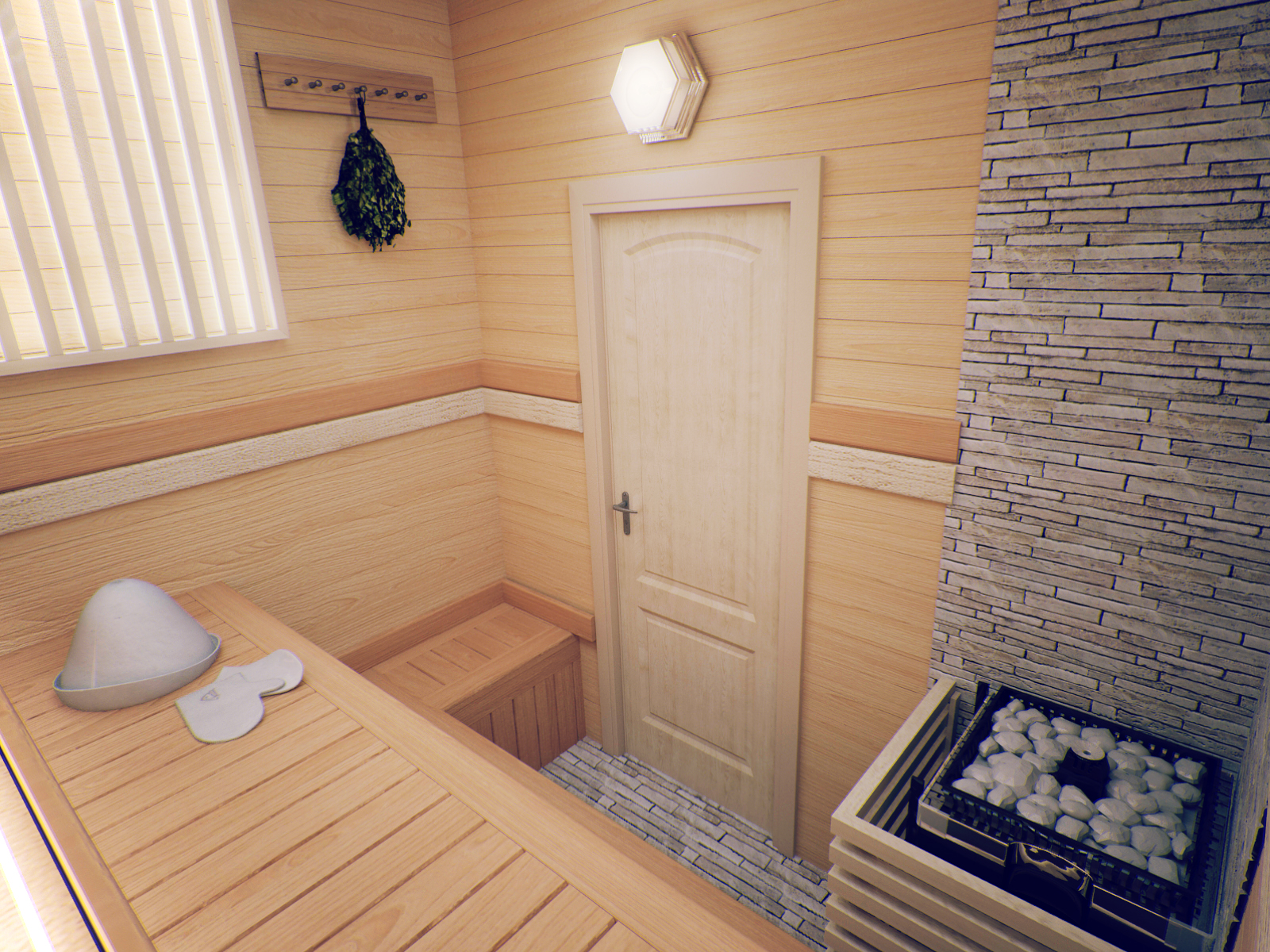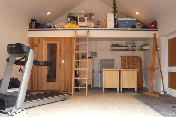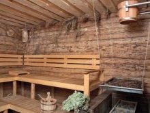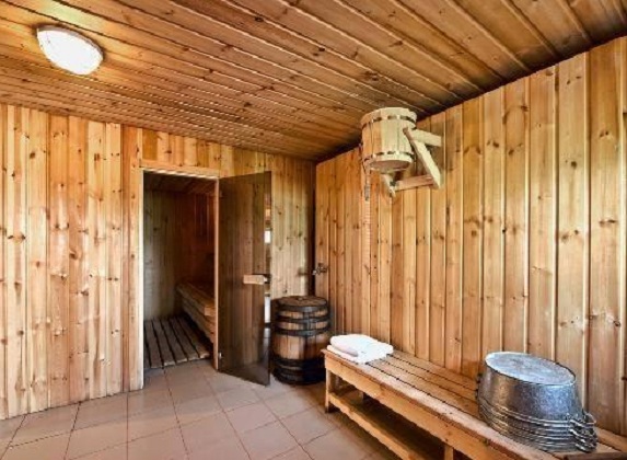 Le sol du sauna est toujours légèrement incliné pour faciliter l'évacuation de l'eau. Une salle de loisirs est équipée dans la pièce voisine (ou, ce qui est beaucoup plus correct, sur le niveau supérieur). Il est extrêmement rare qu’ils placent la salle de bain au deuxième niveau du garage, car il faudra alors isoler soigneusement le sol des fuites et il est plus difficile d’utiliser un tel bâtiment. Il existe également d'autres types d'aménagement dans lesquels, avec le sauna et le garage, se trouve une unité de service ou même une cuisine d'été à part entière.
