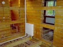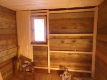 Comme matériau de finition principal, on utilisait souvent des panneaux ou des planches bien polis; le cadre pour eux est formé avec la montée au-dessus de la caisse isolante et perpendiculairement à celle-ci. Ensuite, la lame d’air facilitera le séchage de l’arbre une fois mouillé par la vapeur d’eau. Sur la pose de fils électriques doivent prendre soin de l'isolation des murs, et placez l'isolation sous le sol jusqu'au dernier.