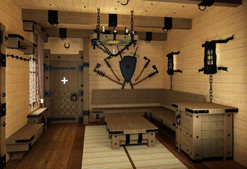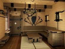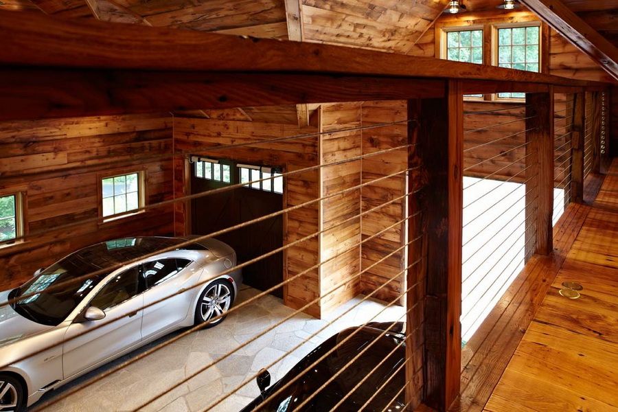 Les finitions intérieures du garage doivent être réalisées exclusivement avec des matériaux naturels. Dans la plupart des cas, le bois est utilisé, et seul le savoir-faire en matière de conception est approprié pour utiliser des surfaces en pierre. En outre, ils imposent un certain nombre de restrictions quant au choix du mobilier approprié. Pour la conception du vestiaire, la plupart des experts recommandent d'utiliser un style rustique: il est émotionnellement sympathique et améliore considérablement l’atmosphère des visiteurs.
