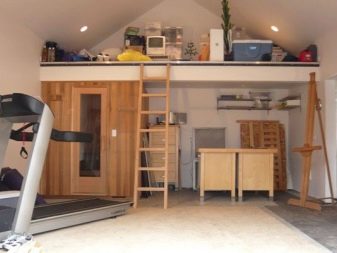 Dans de nombreux cas, telle ou telle partie du garage sert à l’accumulation de carburant (généralement du bois); si elles se terminent brusquement pendant les procédures de bain, il sera possible d’en prendre de nouvelles dans une pièce chaude, sans sortir. C'est non seulement pratique, mais cela vous permet également d'éviter un refroidissement excessif suivi d'une bronchite et de problèmes similaires.Certains propriétaires équipent les complexes de bains de mansards, puis tout devient encore plus pratique.