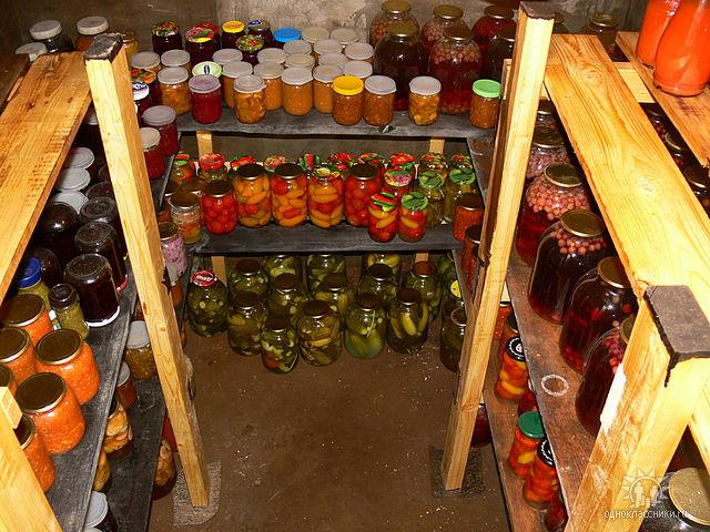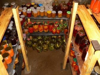 Lorsqu'il n'y a pas beaucoup d'espace - par exemple, la superficie totale n'est que de 6 x 4 m, il est judicieux d'équiper des étagères pour stocker les conserves et autres produits ménagers au sous-sol du garage.