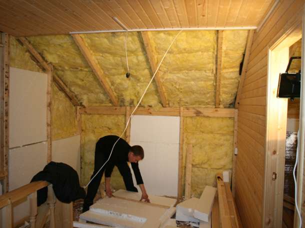 Les travaux d’aménagement de la partie intérieure de la baignoire commencent par la création d’une isolation thermique complète du plafond et des murs. Les matériaux préférés sont la laine minérale et le polypropylène revêtu d'une feuille (empêchant simultanément la circulation de l'humidité). Pour les rouleaux ou les plaques tenues fermement, crée un cadre égal en épaisseur au matériau utilisé. En présence d'un grenier non chauffé devra mettre l'isolation de son côté.
