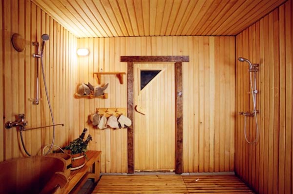 Dans le compartiment de lavage et dans le hammam, il est inacceptable d'utiliser du bois imprégné de synthèse, par conséquent, il est nécessaire de choisir des espèces qui sont elles-mêmes résistantes à l'humidité - le chêne ou le mélèze.