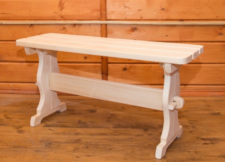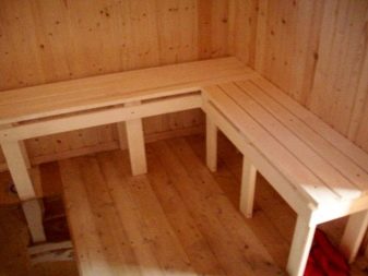 Il n'est pas recommandé d'installer la structure près du mur - vous devriez laisser un petit espace pour évacuer l'eau. Lors de la fabrication des bancs, une attention particulière doit être accordée à la transformation du bois: plus le polissage est soigné, moins le risque de blessure ou d'éclatement est élevé. Toutes les caractéristiques ci-dessus concernent des magasins situés directement dans la zone de hautes températures et d'humidité. Mais, par exemple, dans les vestiaires, vous pouvez installer un banc tout à fait normal.
