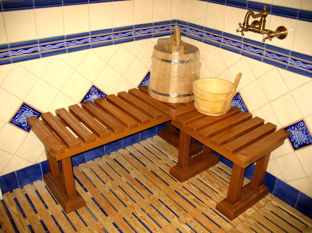Le banc pour le bain a de nombreuses caractéristiques distinctives. Étant donné que le produit est utilisé dans une pièce très humide, une attention particulière doit être portée lors de sa fabrication ou de sa sélection au matériau qui le compose, à ses propriétés et à ses caractéristiques. Pour une pièce compacte, par exemple un petit hammam de campagne, le modèle peut être angulaire.
