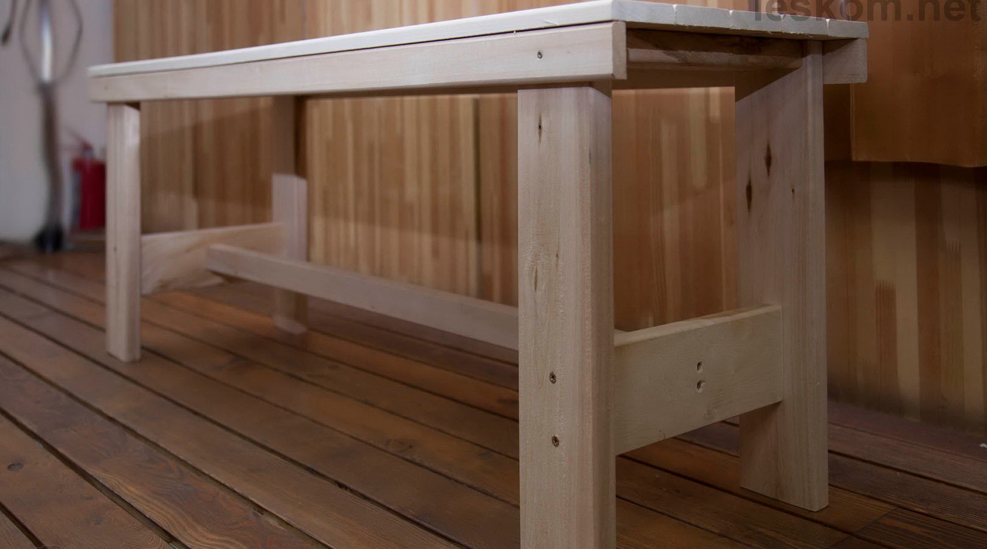 La dernière étape de la fabrication du banc consistera à fixer le siège. Il est fixé à la structure avec des vis spéciales. Pour éviter l'apparition de pourriture, les vis autotaraudeuses doivent être légèrement approfondies. Le lieu d'approfondissement des fixations doit être recouvert d'un mastic spécial. C'est tout - une grande boutique pour une salle d'attente est prête. Le processus de fabrication d'un banc pour un hammam est un peu plus compliqué et prend un peu plus de temps.