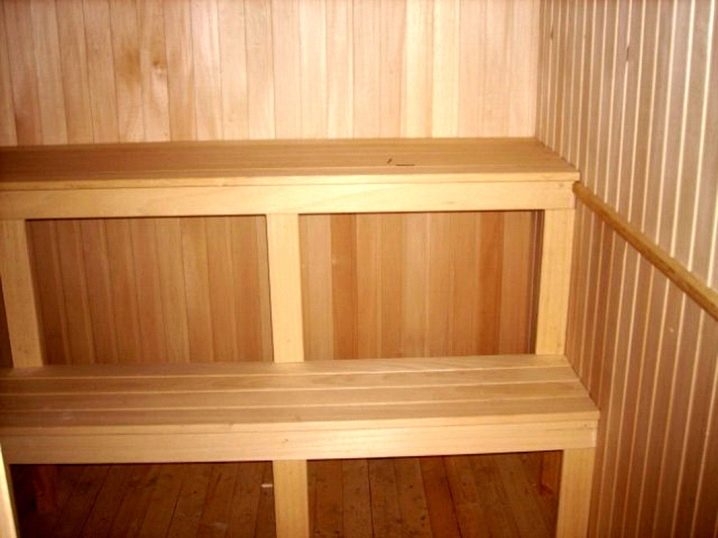 Pour assembler des pièces, il est nécessaire de privilégier les clous en bois. L'aération et le séchage réguliers du bain après une visite aideront à prévenir l'apparition et la reproduction de moisissures, ainsi qu'à augmenter de manière significative la durée de fonctionnement du mobilier et des locaux. Pour une meilleure ventilation et un meilleur séchage, vous devez laisser un espace entre le revêtement de sol et la tablette inférieure.